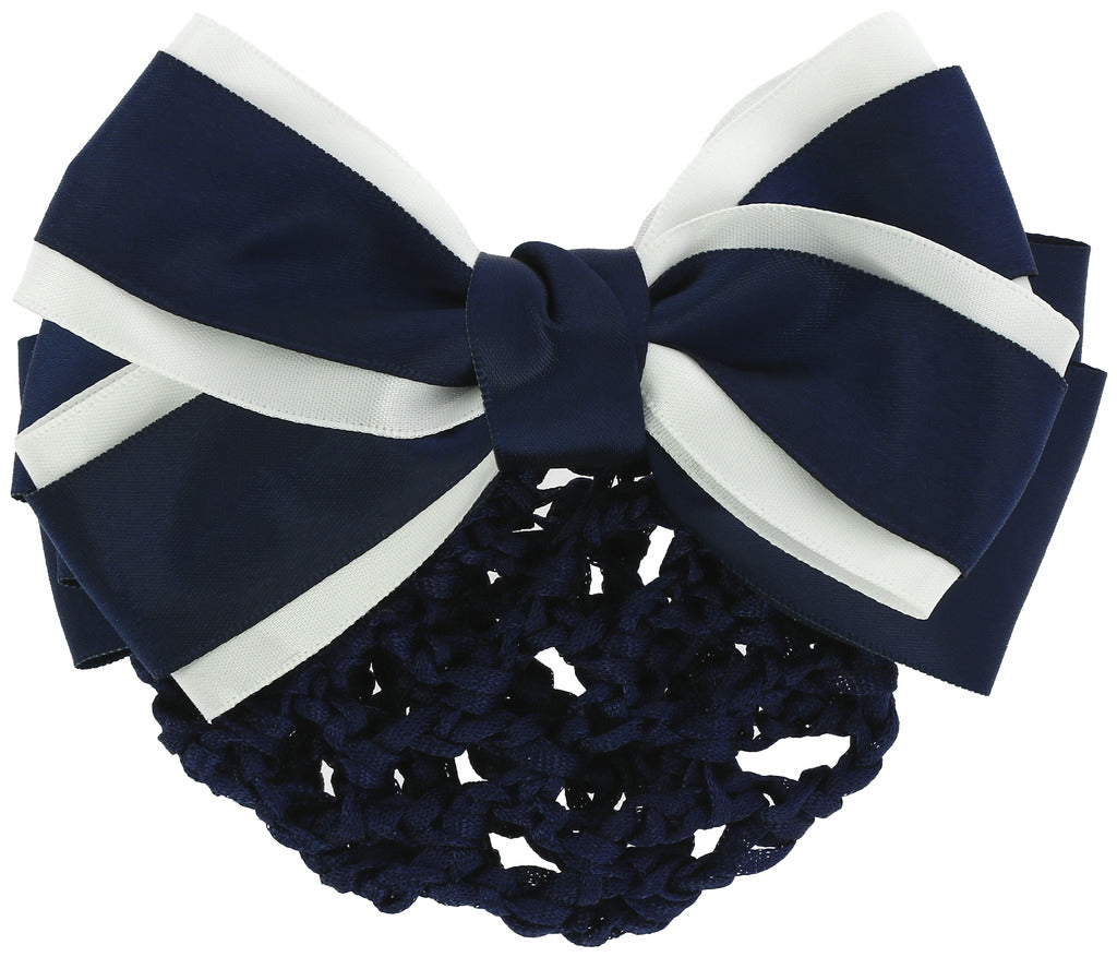 Pince à cheveux avec noeud bicolore marine et blanc.